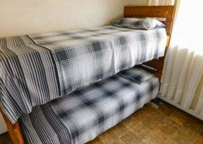 - Bedroom 2: Bunk beds and a single bed (sleeps 3).