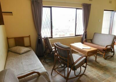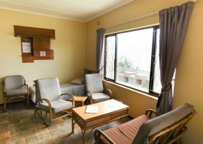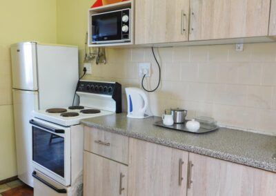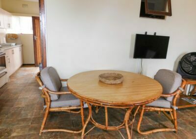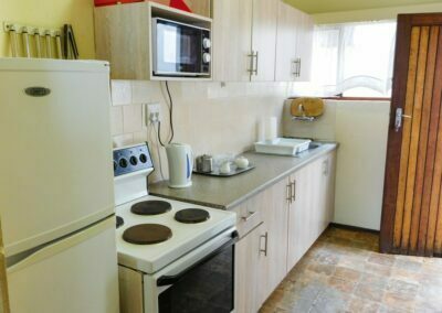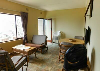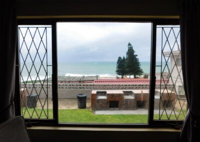Situated in the second row of the holiday complex, overlooking braai area, this comfortable sea-facing self-catering unit can accommodate 5 guests. The unit has a kitchen with all the basic amenities, two bedrooms, bathroom, lounge, and patio with built-in braai.