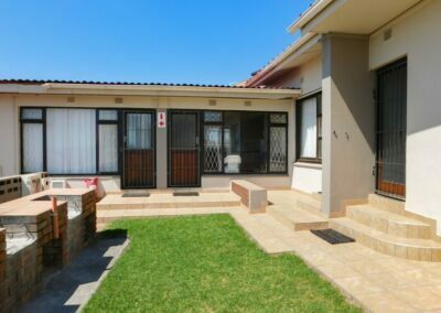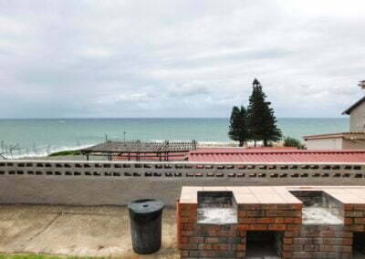 The sea-facing braai area has a built-in braai. Includes braai grid, tongs, and outdoor furniture (table and chairs).
